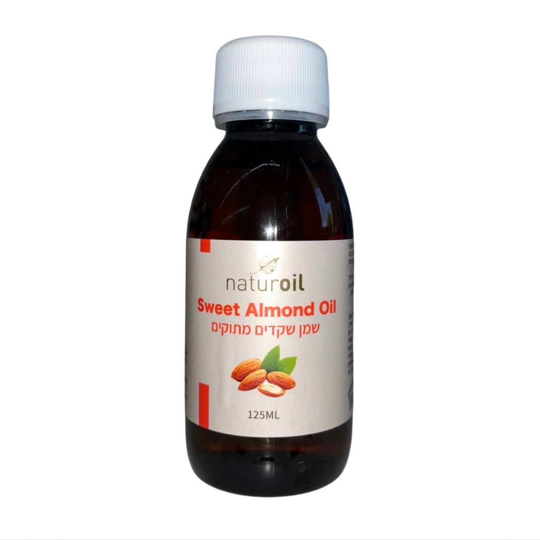 שמן שקדים 125 מ״ל מגיע בבקבוק מפלסטיק, לא שביר